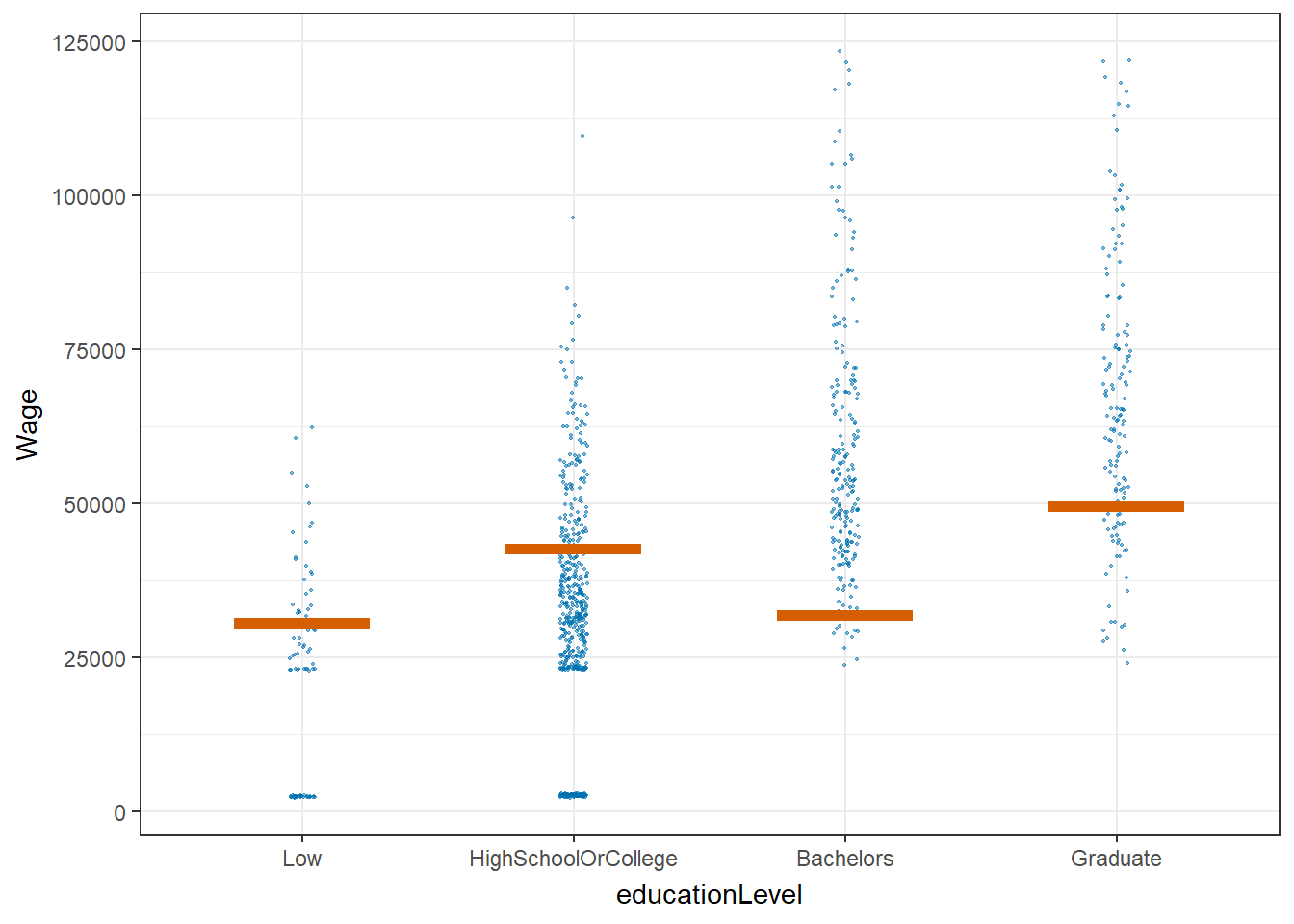 #Wage VS education level HOP
